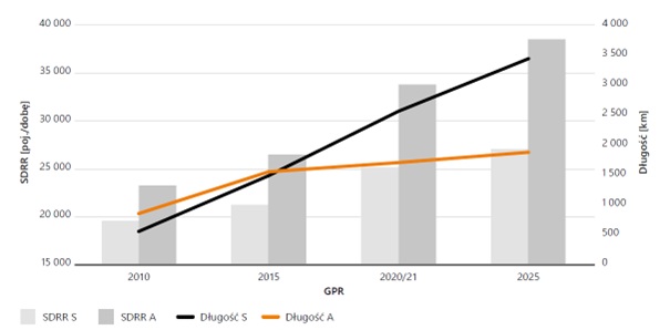 W GPR 2025 ponad 60 proc. całej pracy przewozowej wykonanej na sieci dróg krajowych skupia się na 4518 km tras. Prawie 90 proc. tej pracy wykonują autostrady i drogi ekspresowe. W dużym uproszczeniu oznacza to, że 60 proc. ruchu pojazdów na sieci dróg krajowych skupia się na nieco ponad 4500 km tras. Praca przewozowa to jeden z podstawowych mierników efektywności w transporcie (obliczany jako iloczyn długości sieci i wielkości ruchu).