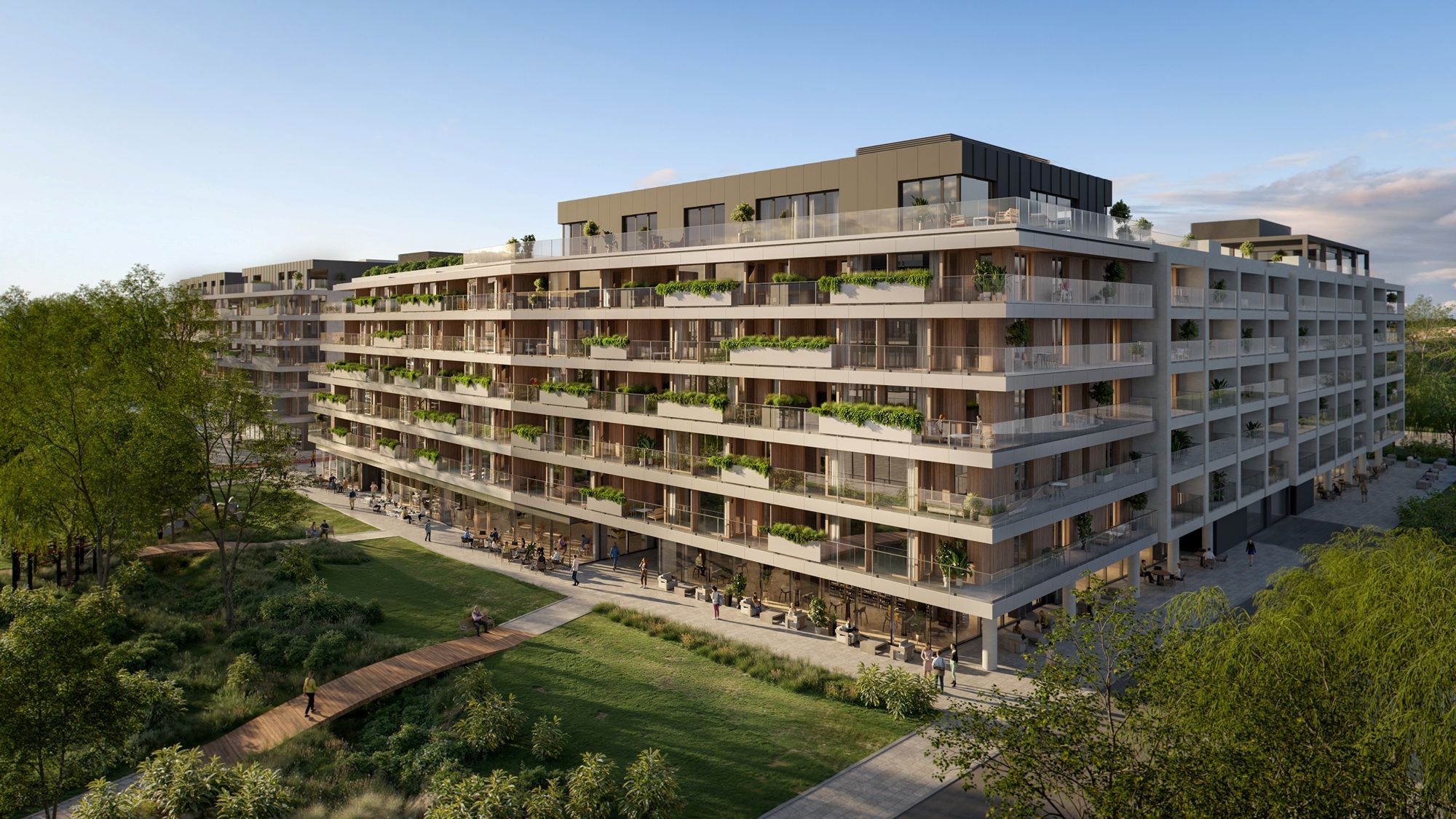W październiku 2025 r. ruszyła sprzedaż mieszkań w już drugim budynku dzielnicy, którego budowa zakończy się w I kwartale 2028 r. Budynek będzie miał siedem kondygnacji oraz 278 mieszkań o powierzchniach od 29 do 178 m2. Na najwyższej kondygnacji powstaną penthouse’y o powierzchni dochodzącej do 178 m2 i wysokości pomieszczeń sięgającej 330 cm, oferujące przestrzeń i spektakularne widoki na Warszawę. Dopracowane części wspólne sprawią, że codzienne życie zyska nową jakość. To miejsce połączy marzenia o wyjątkowym stylu z wygodą dnia codziennego. Zastosowanymi rozwiązaniami oraz architekturą wpisze się w sportowy, inspirujący charakter całej inwestycji, tworząc przestrzeń sprzyjającą działaniu, aktywności sportowej i stawianiu sobie ambitnych celów.