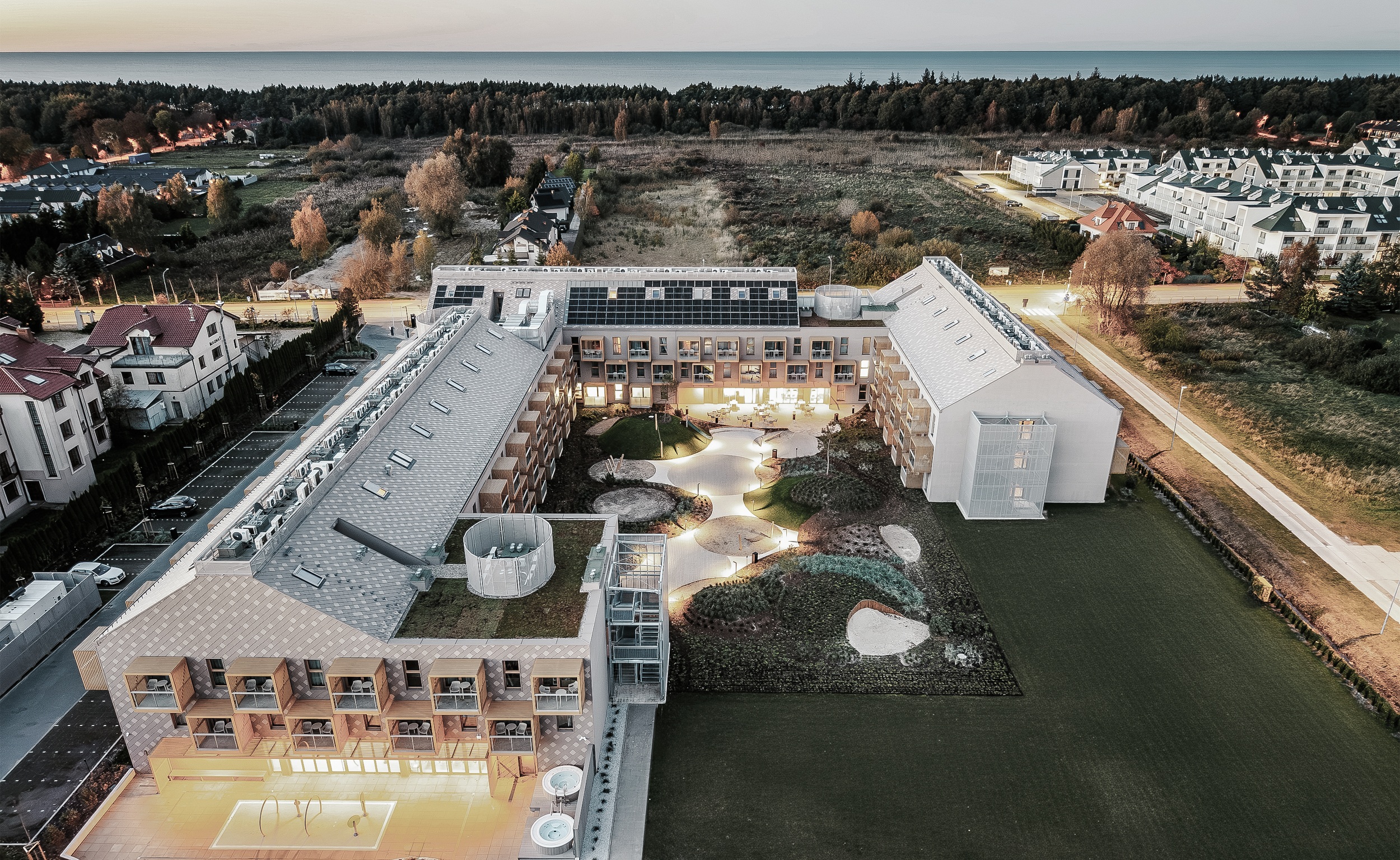 Całość położona jest kilka minut spacerem od jednej z najpiękniejszych plaż w regionie Kołobrzegu, w otoczeniu lasów i morskiego powietrza przesyconego jodem.