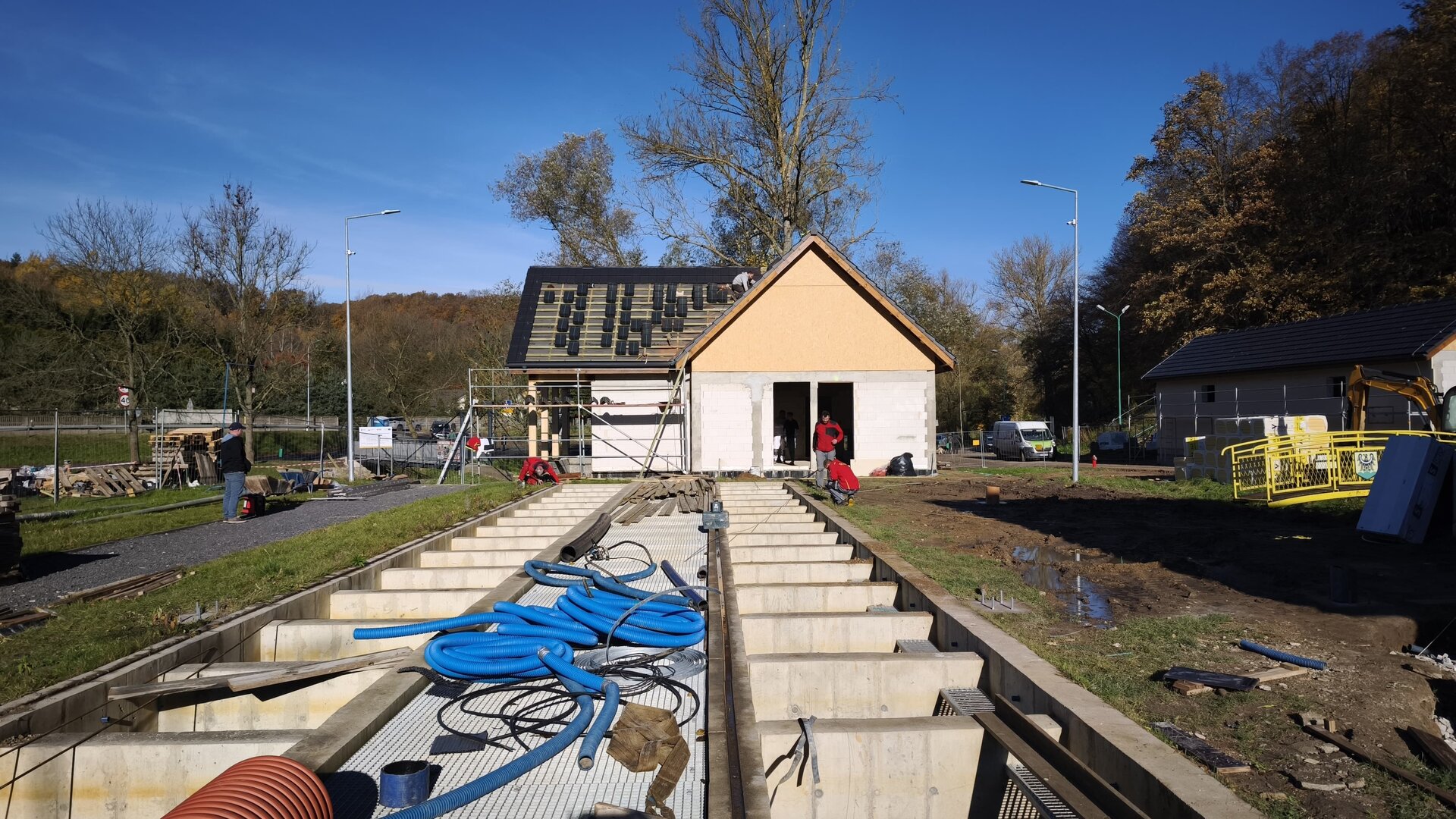 Wszystkie trzy budynki: sędziowski, startowy i sanitarny rosną w oczach i są już w zasadzie zadaszone. Wykonawca zaczął działać przy ich elewacjach, które będą docieplone płytami PIR, a następnie otynkowane. W połowie listopada na plac budowy mają przyjechać okna i drzwi. Budowlańcy przygotowują się również do wykończenia cokołów łupkiem i montowania na ścianach zewnętrznych desek imitujących konstrukcję szachulcową.
