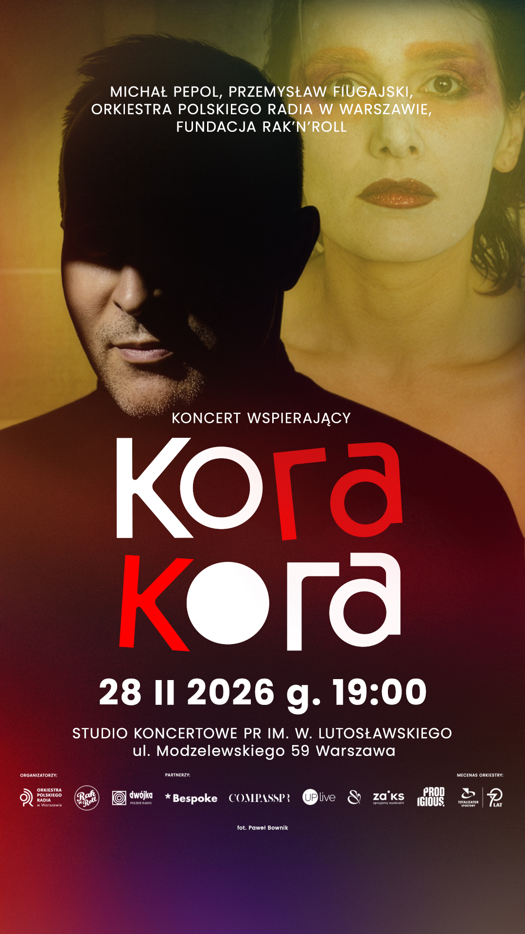 Organizatorami koncertu „KORAKORA” są Orkiestra Polskiego Radia w Warszawie, Fundacja Rak’n’Roll. Wygraj Życie! oraz Dwójka - Program 2 Polskiego Radia. Partnerami wydarzenia są: Bespoke, CompassPR, UpLive, Saatchi & Saatchi, Prodigious oraz ZAiKS. Mecenasem Orkiestry Polskiego Radia w Warszawie jest Totalizator Sportowy.