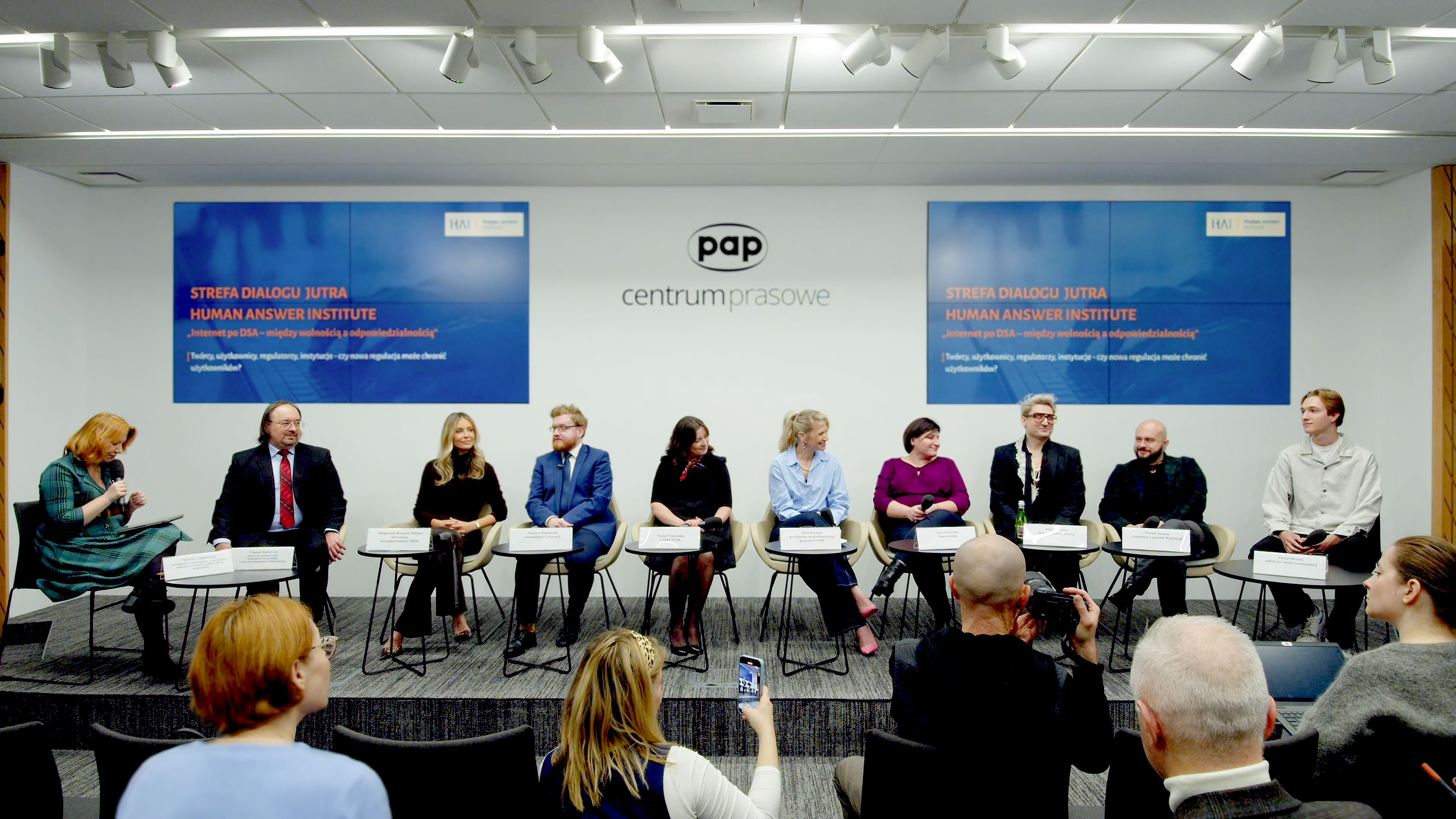 Debatę „Internet po DSA - między wolnością słowa a odpowiedzialnością” zorganizował Human Answer Institute w ramach cyklu Strefa Dialogu Jutro. Jej uczestnicy - przedstawicie rządu, eksperci rynku mediów, nauczyciele, uczniowie, dziennikarze, influencerzy - zgodzili się, że dziś obywatele są bezbronni w walce z patologią, jak choćby hejtem, fake newsami, przemocą słowną, podszywaniem się pod znane osoby.