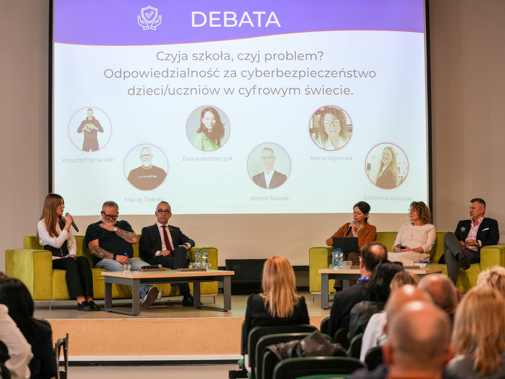 Po części wykładowej odbyła się debata „Czyja szkoła, czyj problem? Odpowiedzialność za cyberbezpieczeństwo dzieci/uczniów w cyfrowym świecie”, którą poprowadziła autorka programów szkoleniowych dla nauczycieli Ewa Kołodziejczak, a uczestniczyli w niej Witold Nowak, Marta Wysocka, Maciej Dębski, uczennica II LO w Koninie Antonina Walczak oraz Krzysztof Ignaczak. Podkreślano tu wartość relacji i zaufania m.in. na linii uczeń – nauczyciel, dziecko – rodzic, które mogą uchronić młodych ludzi przed zamykaniem się w sieci. Na zakończenie debaty każdy z uczestników miał przedstawić pomysł prowadzący do zmiany nawyków. – Godzina mniej w sieci = godzina dla dzieci – zaproponował z-ca prezydenta Witold Nowak.