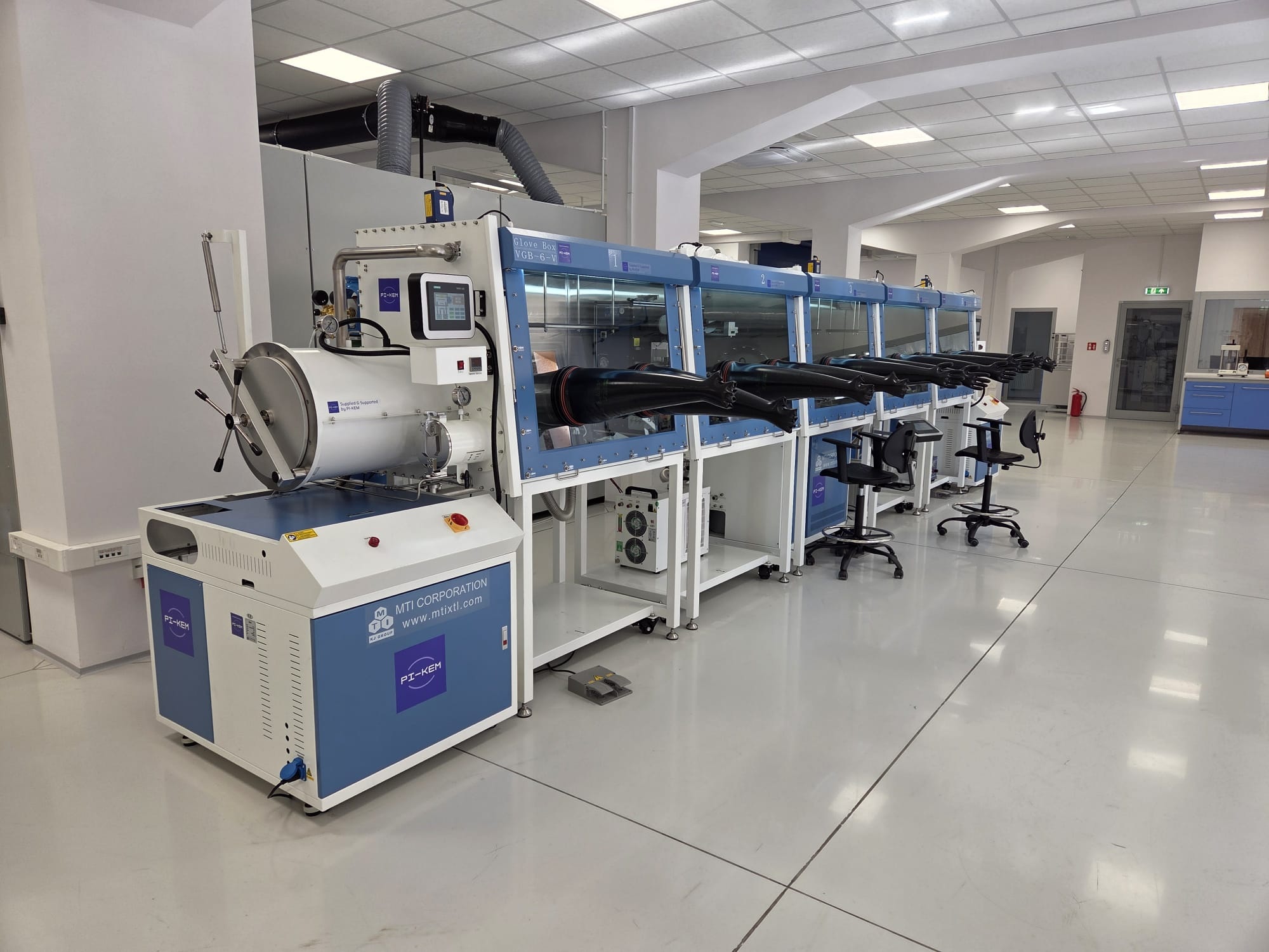 Linia pracuje w skali półtechnicznej, zapewniając wysoką powtarzalność procesu oraz pełną kontrolę parametrów technologicznych. Umożliwia także pracę z szerokim spektrum materiałów - od klasycznych systemów litowo-jonowych, przez technologie sodowo-jonowe, po materiały eksperymentalne i przedkomercyjne, w tym anody z litu metalicznego.