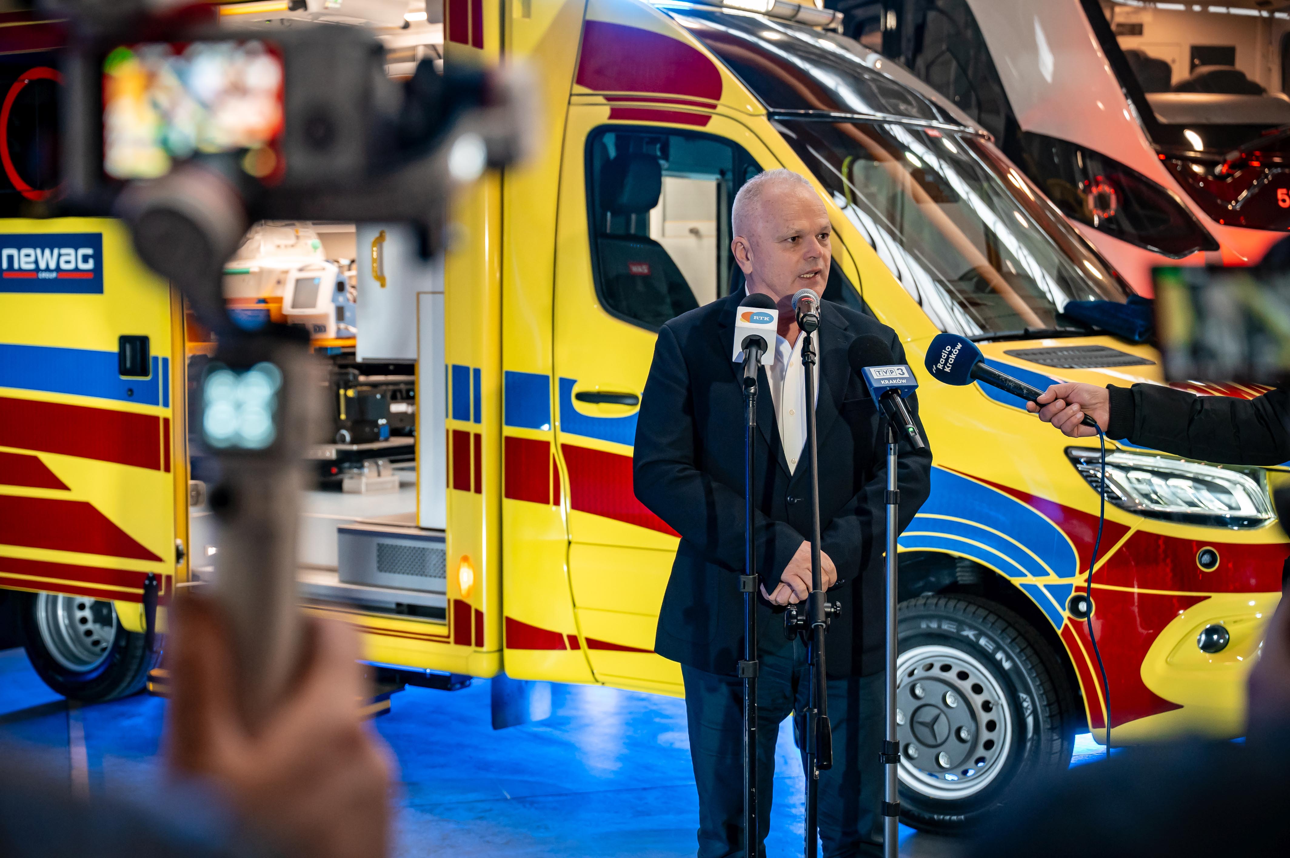 „150 lat istnienia firmy to dla nas zobowiązanie. Od pokoleń budujemy rozwiązania, które służą ludziom - dziś rozumiemy to szerzej niż tylko przez pryzmat transportu. Ta karetka jest wyrazem naszej odpowiedzialności wobec społeczności, w której od półtora wieku funkcjonujemy” - podkreśla prezes zarządu NEWAG - Zbigniew Konieczek