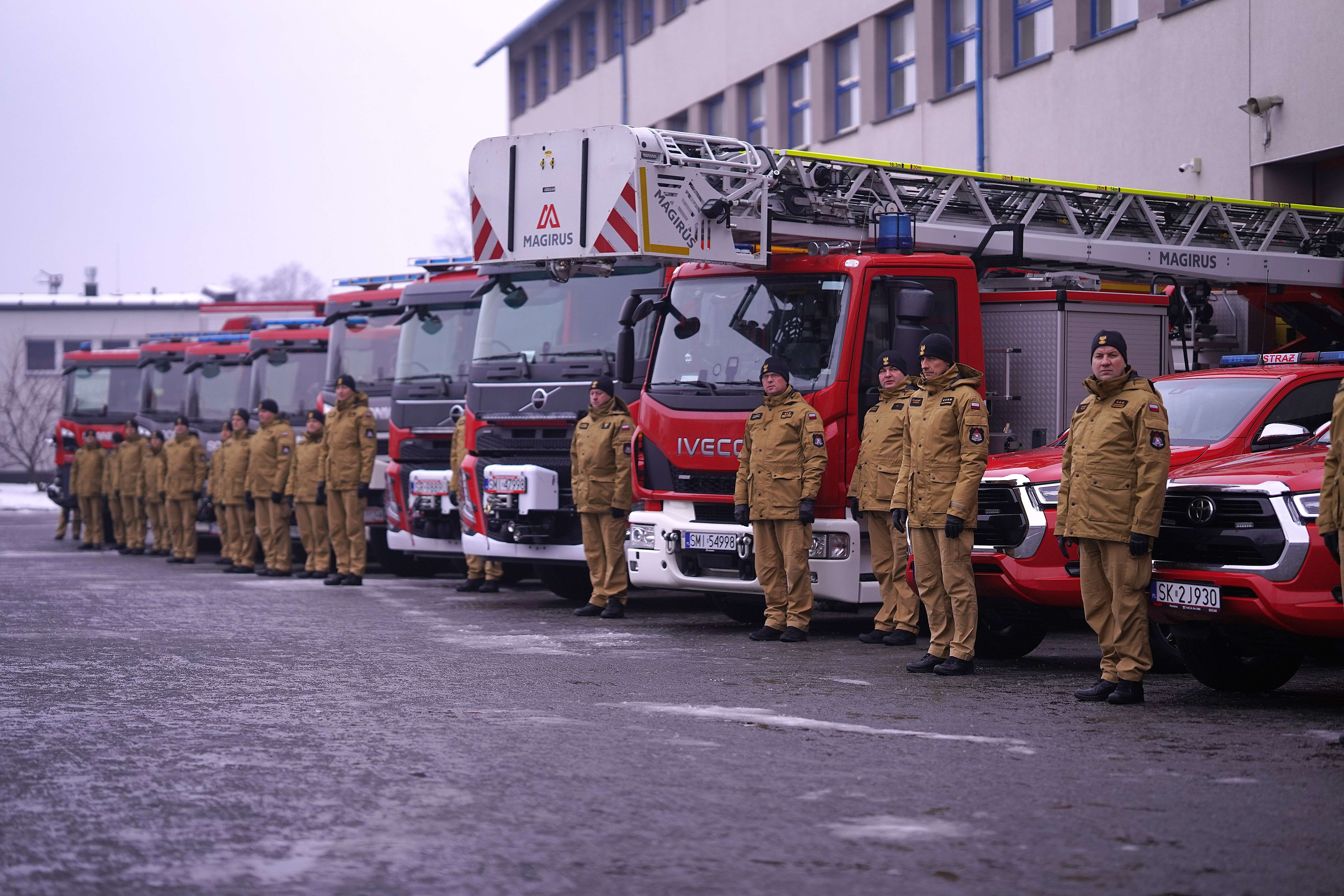 Naradę poprzedziło uroczyste przekazanie pojazdów ratowniczo-gaśniczych i specjalnych pozyskanych w 2025 r. - włączonych do podziałów bojowych jednostek PSP województwa śląskiego. W minionym roku zakupiono łącznie 30 pojazdów, w tym m.in. samochody ratowniczo-gaśnicze średnie i ciężkie, pojazd z drabiną mechaniczną, samochody kwatermistrzowskie i do przewozu osób, lekkie auta rozpoznawczo-ratownicze i operacyjne oraz quad. Łączna wartość zakupów wyniosła ponad 21,7 mln zł, a środki pochodziły m.in. z funduszy ochrony środowiska, Programu Modernizacji, Funduszu Wsparcia PSP, środków samorządowych, budżetów komend oraz programu INTERREG.