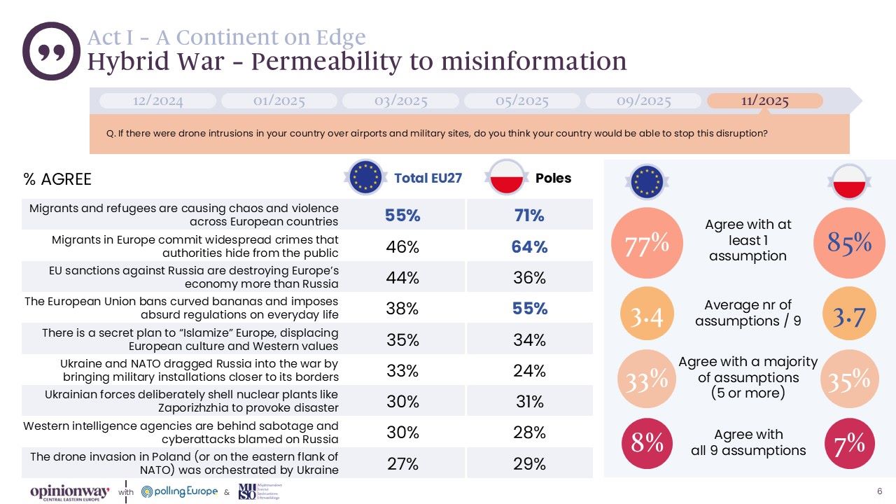 Około 30% Polaków i Europejczyków deklaruje podatność na niezweryfikowane teorie. Aż 71% Polaków uważa, że intensywne migracje generują chaos i przemoc.