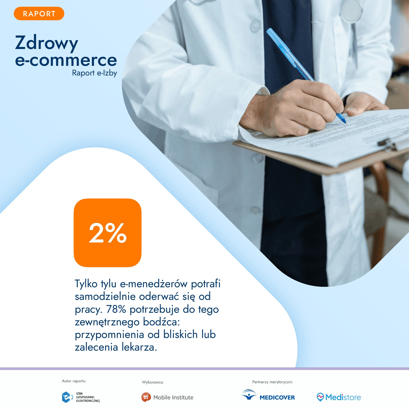 Raport wskazuje, że liderzy e-commerce funkcjonują w trybie permanentnego przeciążenia. Wysokie tempo wzrostu branży, presja wyników oraz silna identyfikacja z pracą sprawiają, że granice między życiem zawodowym a prywatnym ulegają zatarciu. Tylko 2 proc. menedżerów deklaruje, że potrafi samodzielnie oderwać się od pracy, a ponad jedna trzecia ma dla siebie mniej niż godzinę dziennie.