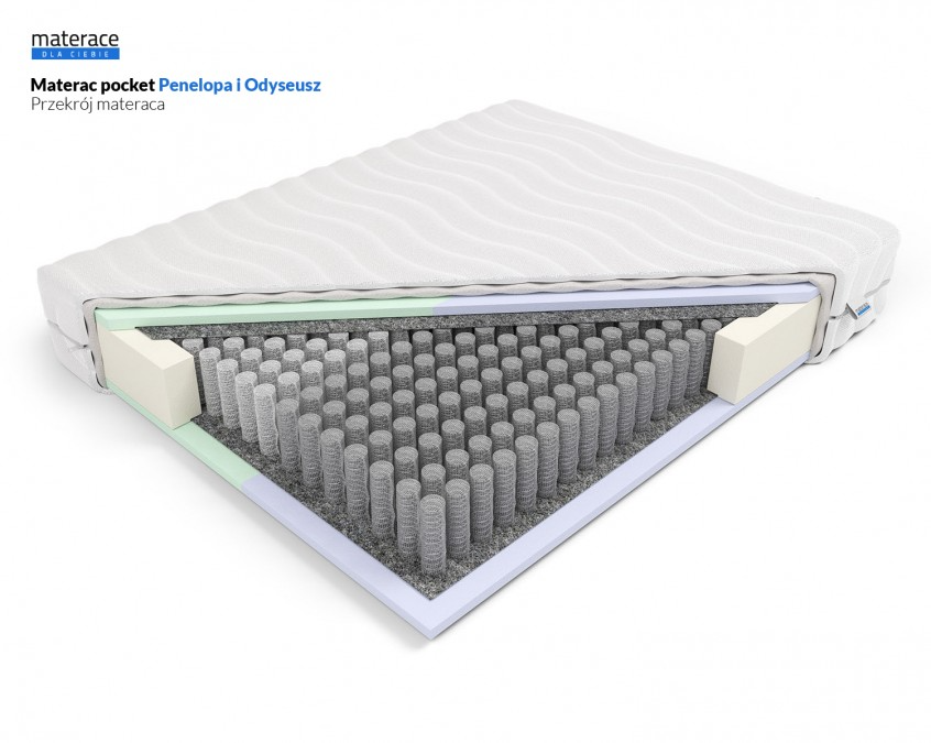 Materac Penelopa i Odyseusz to świetny wybór dla par, które nie uznają kompromisów. To model o dzielonej twardości: jedna strona jest twarda (H3), druga jest stroną o średniej twardości (H2). Jest to odpowiedni materac dla par o różnej masie ciała. Dodatkowo sprężyny kieszeniowe zapewniają wysoką elastyczność punktową. Połączenie elastycznych pianek z konstrukcją pocket sprawia, że materac doskonale podtrzymuje kręgosłup i zapewnia optymalny komfort snu.
